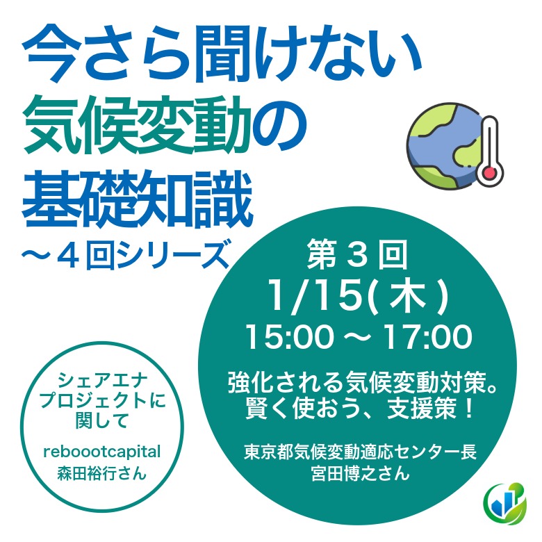 ・テーマ :強化される気候変動対策 賢く使おう、支援策